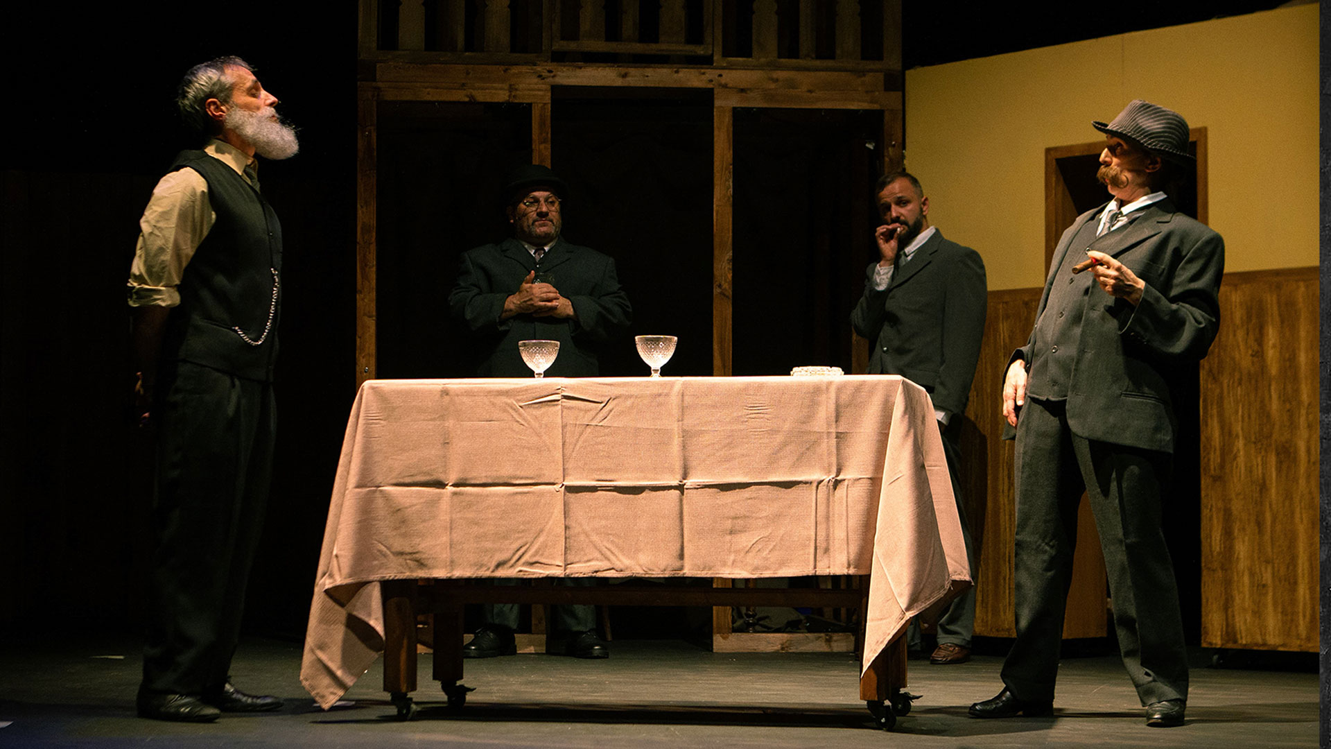 Saltantes Teatro Autoría: Alfonso Zapico Dramaturgia y dirección: Luis Alija Coreografía y movimiento escénico: Estrella García Con Carlos Dávila, Enrique Dueñas, Carmen Gloria García, Ernesto González, Carla Loga, Alberto Rodríguez, David Varela y Nerea Vázquez Propuesta dramatúrgica condensando la novela gráfica de Alfonso Zapico: La aventura de los más de 100 personajes (representados por ocho intérpretes) que llega hasta la Revolución asturiana del 34.